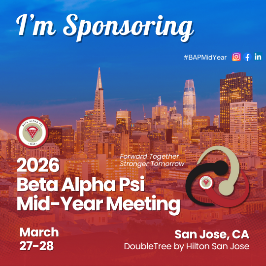 Beta Alpha Psi Professional Partners are entitled to one complimentary registration per company/organization; any additional attendees must pay the $190 early bird registration fee. Both Professional Partners and volunteers are requested to register by contacting bap@bapeo.org.